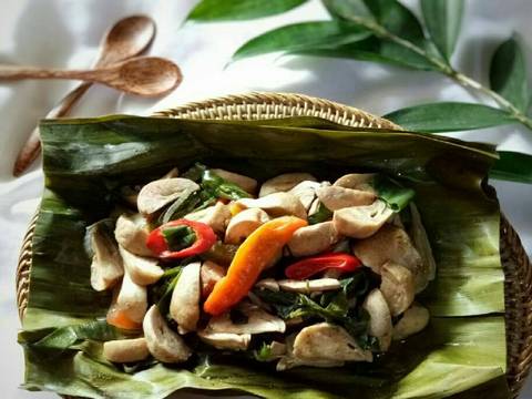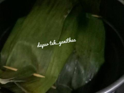 - Siapkan daun pisang, potong sesuai kebutuhan, layukan di atas kukusan atau di atas api kompor agar mudah membungkus dan tidak mudah robek